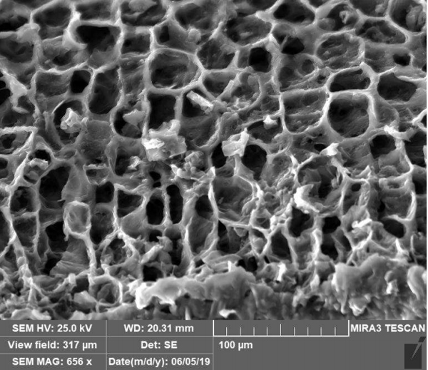對一個碳化硅樣品進行掃描電鏡(SEM)成像,以確定其表面白色物質(zhì)的組成。在掃描電子顯微鏡下分析時,確定該材料為碳化硅纖維,范圍為6-10µm。從爐中取出的樣品如圖3頂部所示,隔板下方的樣品為活性炭。