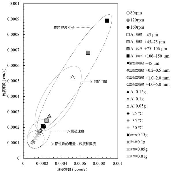 圖3:基于本研究中所有黃金回收結果的速率常數(shù)和傳質(zhì)系數(shù)圖。