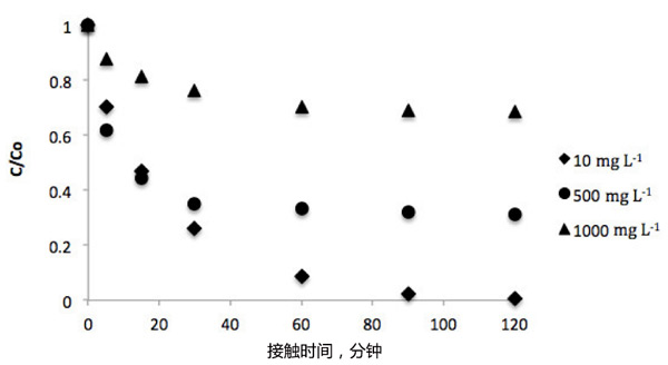 圖1:接觸時間對香草酸平衡濃度的影響。