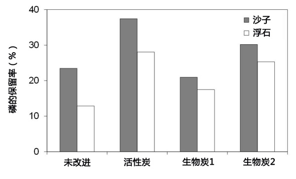 圖4:過(guò)濾柱實(shí)驗(yàn)中的磷(正磷酸鹽)保留率。