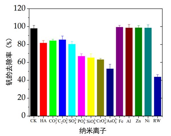 圖2:共存離子對(duì)活性炭載納米零價(jià)鐵去除釩的影響。