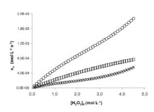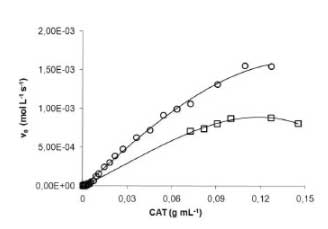 在圖3中關(guān)系決定于過氧化氫的初始濃度的反應(yīng)初速度的變化,當活性炭(CAT)的質(zhì)量-體積是比:(1)1.0×10 -3克毫升- 1,(b)2.0×10 -3 g mL -1和(c)4.0×10 -3 g mL -1,溫度為298 K.
