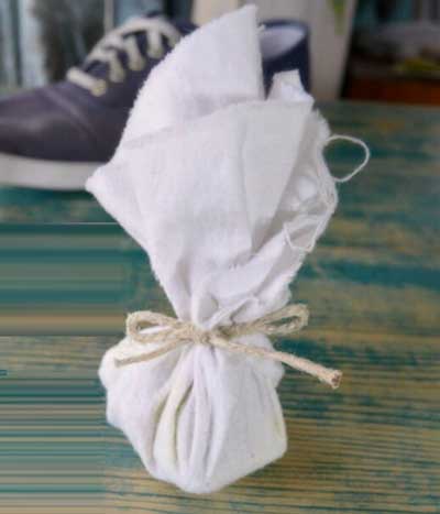 最后,把你的活性炭包裝放在布料的中心。將布料盡可能緊地拉緊,并在布料正上方系上一條繩子,將其緊貼在布料正方形內(nèi)。你可以使用任何你最喜歡的面料,只要記。翰剂喜灰癫蝗挥绊懟钚蕴康奈,并且,經(jīng)常使用你的面料會(huì)變臟,最好選一些不用的薄布料。活性炭在吸收氣味方面確實(shí)做得非常出色。