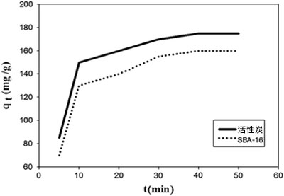 圖2:活性炭和SBA-16吸附脫硫的比較(DBT:1,000 mg / L,吸附劑用量:20 mg / L,溫度:25°C,攪拌時(shí)間:360 min)。