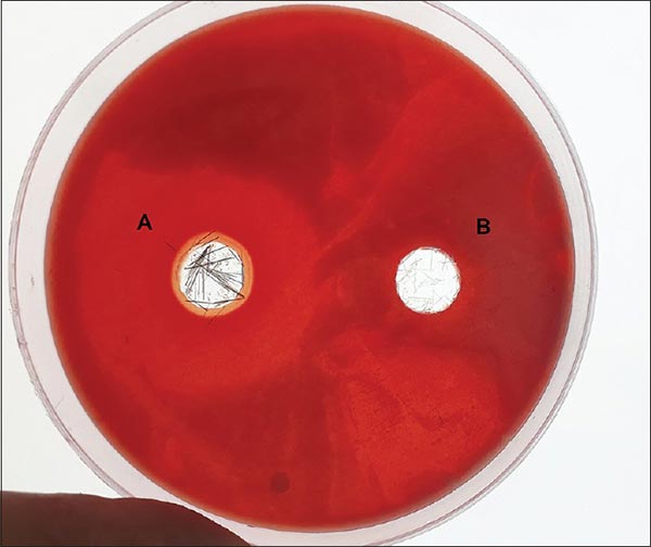圖5:(A)與木炭刷毛有關的10毫米抑制區(qū)。(B)發(fā)現(xiàn)與非炭鬃相關的3mm抑制區(qū)。