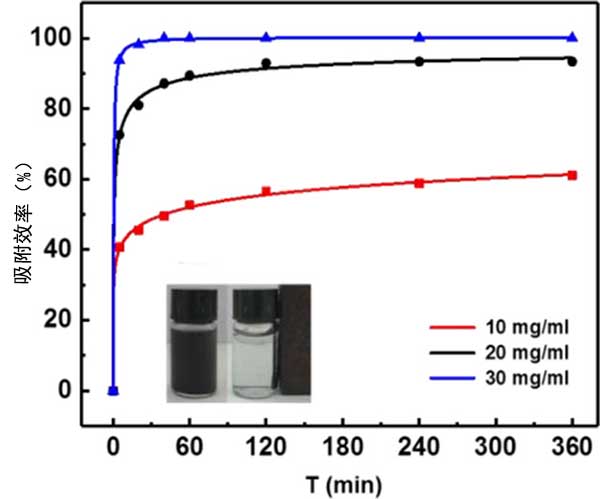 圖1.不同量的活性炭[10mg(紅線(xiàn))20mg(黑線(xiàn))30mg(藍(lán)線(xiàn))]對(duì)DBT的吸附效率。