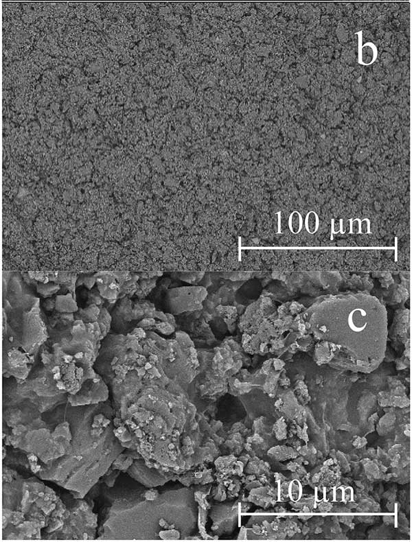 制成的活性炭外表面的SEM圖像顯示在圖2中;钚蕴壳蝮w的形狀看起來略呈橢圓形,與高球形度值和稍低的比具有良好的相關(guān)性。橢圓形狀可能源于與凝固浴撞擊時液滴的扁平化。由于快速凝固,液滴沒有足夠的時間回到理想的球體(具有很低的表面張力)。