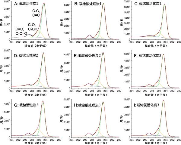 載銠活性炭催化劑的X射線光電子能譜