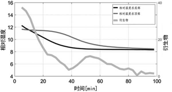 圖4:反應器內(nèi)的相對濕度和出口中二氧化碳的衍生物。