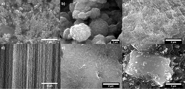 圖2顯示了使用SEM顯示了不同吸附劑的形態(tài)。碳納米角具有如圖2a的SEM圖像所示的聚集結(jié)構(gòu)。碳納米角的TEM圖像(圖3c)顯示只有很少的尖端從球形聚集體結(jié)構(gòu)中突出,表明芽狀碳納米角結(jié)構(gòu)。高分辨率TEM圖像確認(rèn)了碳納米角的單壁錐形結(jié)構(gòu)(圖3c的)。活性炭呈顆粒狀且SEM圖像(圖2f)揭示了沒有特定結(jié)構(gòu)/順序的聚集結(jié)構(gòu),這是活性炭材料的特征。